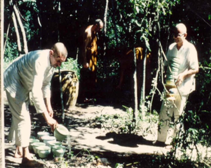 Un prêtre parmi les moines bouddhistes en Thaïlande